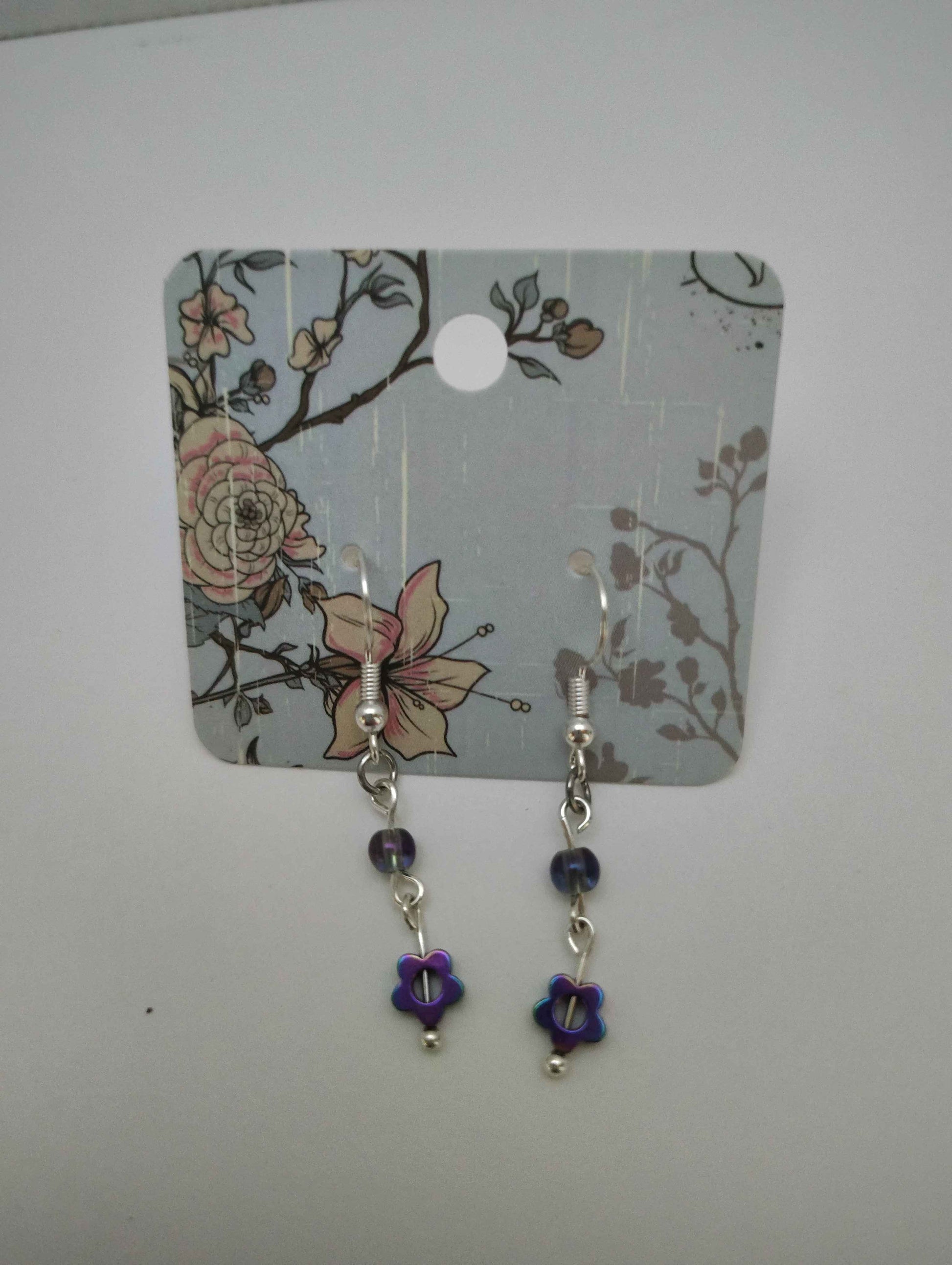 Small iridescent flowers with a matching bead. Earrings are 1 inch long