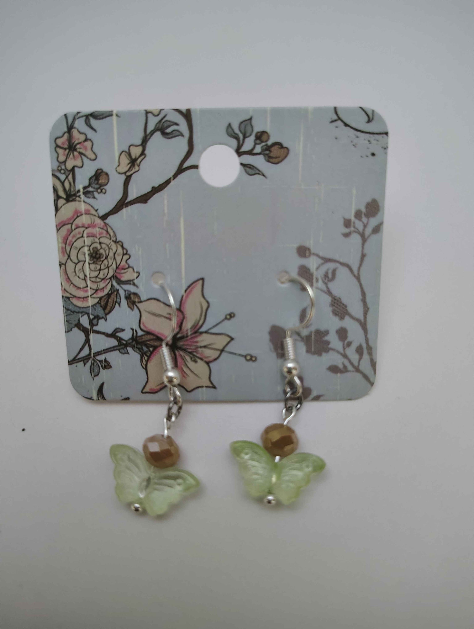 Light yellow butterflies with a dark yellow bead. Earrings are 1/2 inch long.