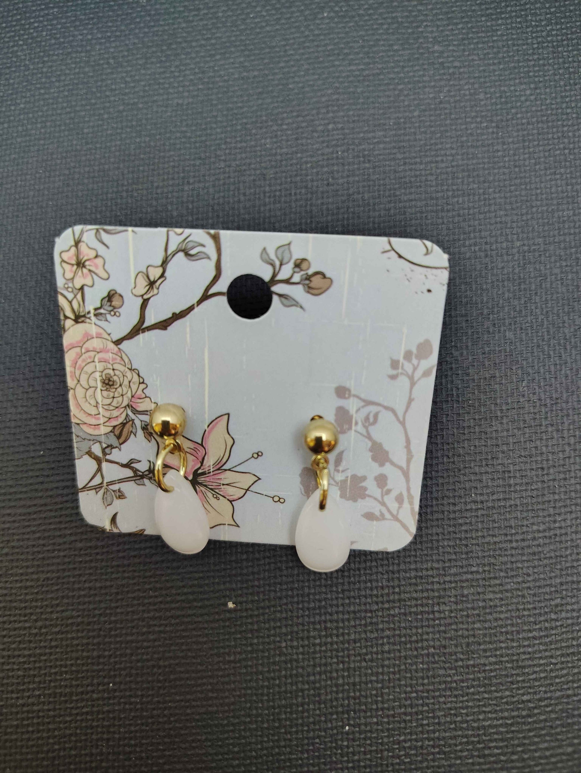 White teardrops on a gold stud base, earrings are 1/2 inch long
